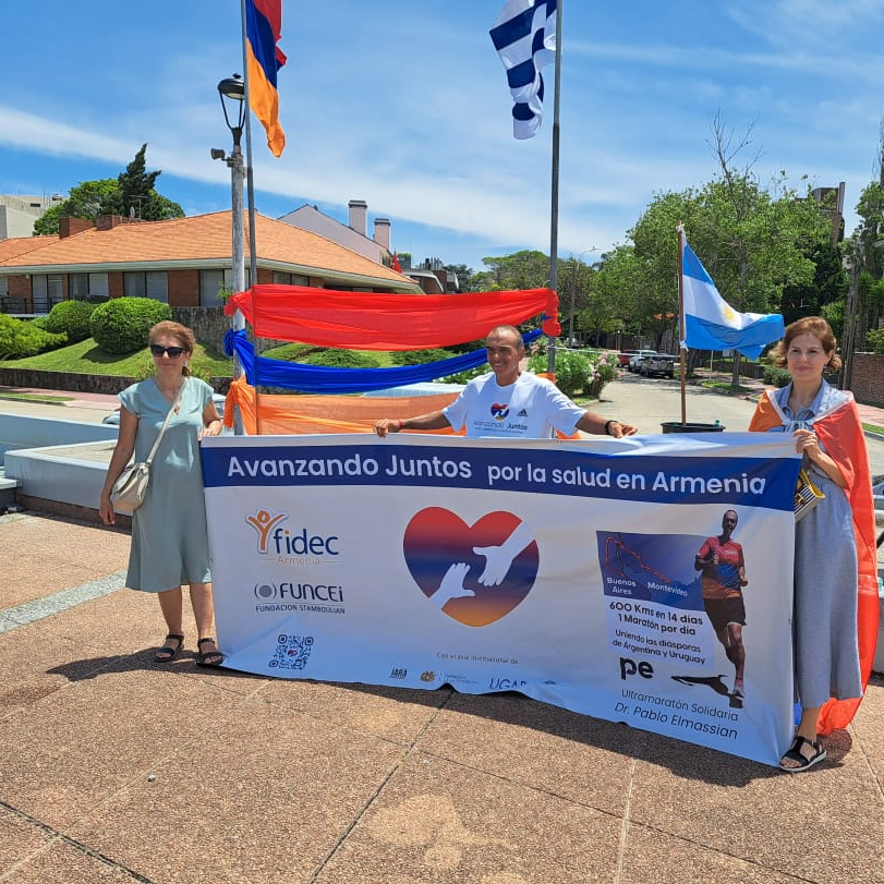 ¡Pablo logró la gran hazaña y llegó a la meta! Hoy sábado 16 de diciembre a las 13, luego de 14 días y 600 km, arribó a la Plaza Armenia de Montevideo donde lo estaban esperando para festejar este gran logro. Concluye la carrera solidaria «Avanzando juntos por el cuidado de la salud en Armenia, Buenos Aires – Montevideo Diciembre 2023» pero con estos fondos seguiremos el trabajo en Shirak y con los refugiados de Artsaj. ¡Gracias a todos los que nos acompañaron! ¡Felicitaciones Pablo y muchas gracias!